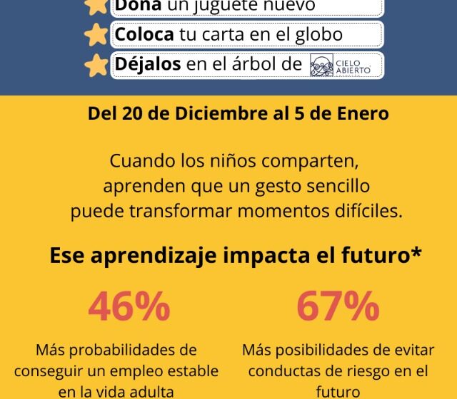Durante este periodo, en la plaza Cielo Abierto Coyoacán, ubicada en Av. Miguel Ángel de Quevedo 247, cualquier persona podrá donar un juguete nuevo, destinado a niños y niñas con Cáncer de Casa de la Amistad, una organización que los acompaña en todo su proceso. Para ellos, un juguete representa más que un regalo, es una chispa de ilusión que brinda un respiro entre tratamientos en jornadas complejas y, al mismo tiempo, es un gesto que acompaña su proceso con esperanza.