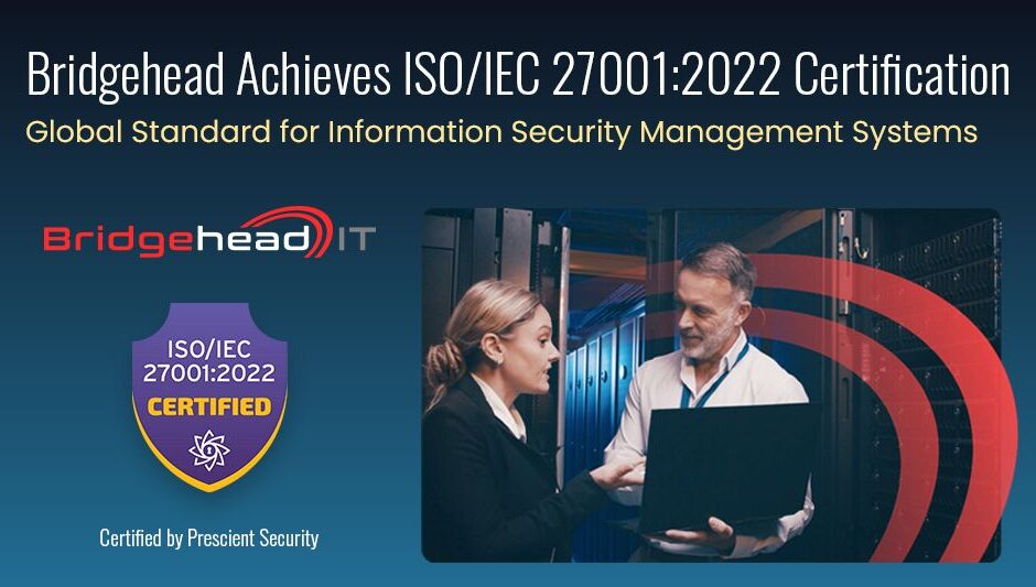 Bridgehead IT anunció que ha obtenido la certificación ISO/IEC 27001:2022, el estándar internacionalmente reconocido para sistemas de gestión de seguridad de la información (SGSI). La certificación fue emitida por Prescient Security, el organismo de certificación acreditado de Bridgehead. Este logro subraya la dedicación de Bridgehead a proteger los datos de sus clientes, mitigar riesgos y mantener el cumplimiento con las mejores prácticas de seguridad a nivel global.
