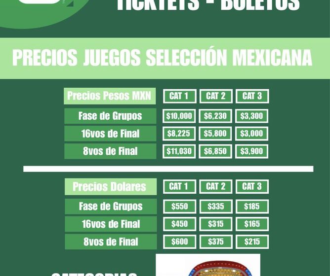 Precios en pesos mexicanos para los partidos de México en Fase de Grupos