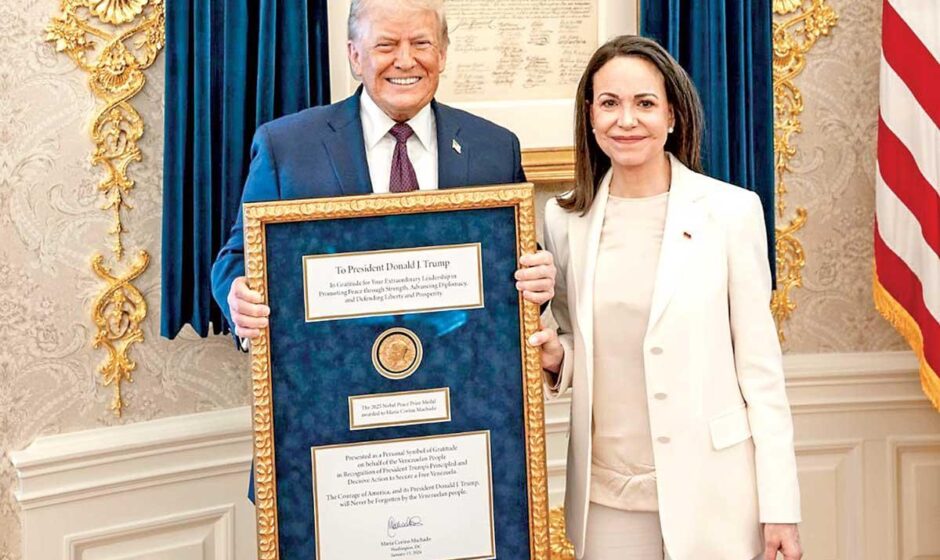 La líder opositora venezolana María Corina Machado le entregó ayer su medalla del Nobel de la Paz al presidente estadunidense, Donald Trump, que ansiaba ganar el galardón el año pasado, y que tildó el gesto de “maravilloso”.
